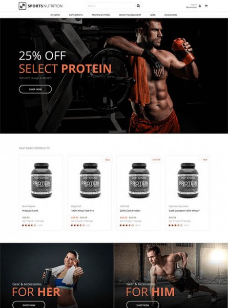 ‘Sports Nutrition’ was designed with Bootstrap or Foundation frameworks in mind. Designed for WordPress with WooCommerce or Magento 2, but can be adapted to fit most content management systems (CMS).